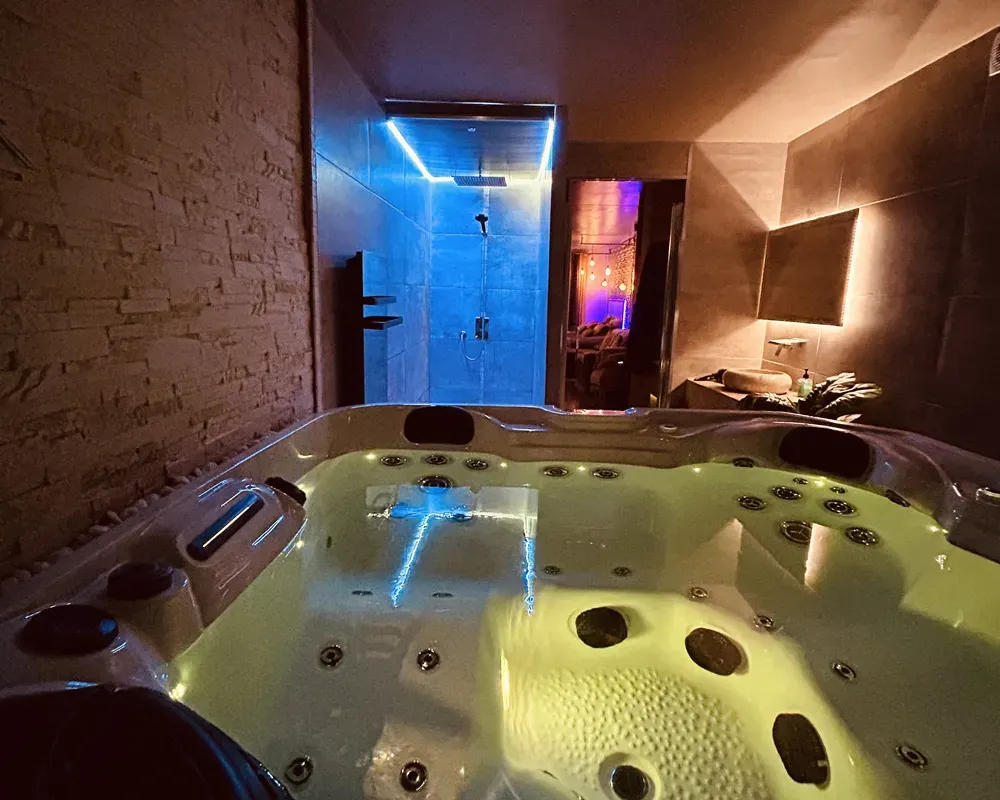 Au cœur de cette suite luxueuse de 40m² pour 2 personnes, un lit somptueux vous accueille, sublimé par une tête de lit miroir qui reflète les lumières tamisées, créant une ambiance à la fois romantique et sophistiquée. Chaque détail a été pensé pour évoquer le glamour et le confort, parfait pour un séjour inoubliable à deux.