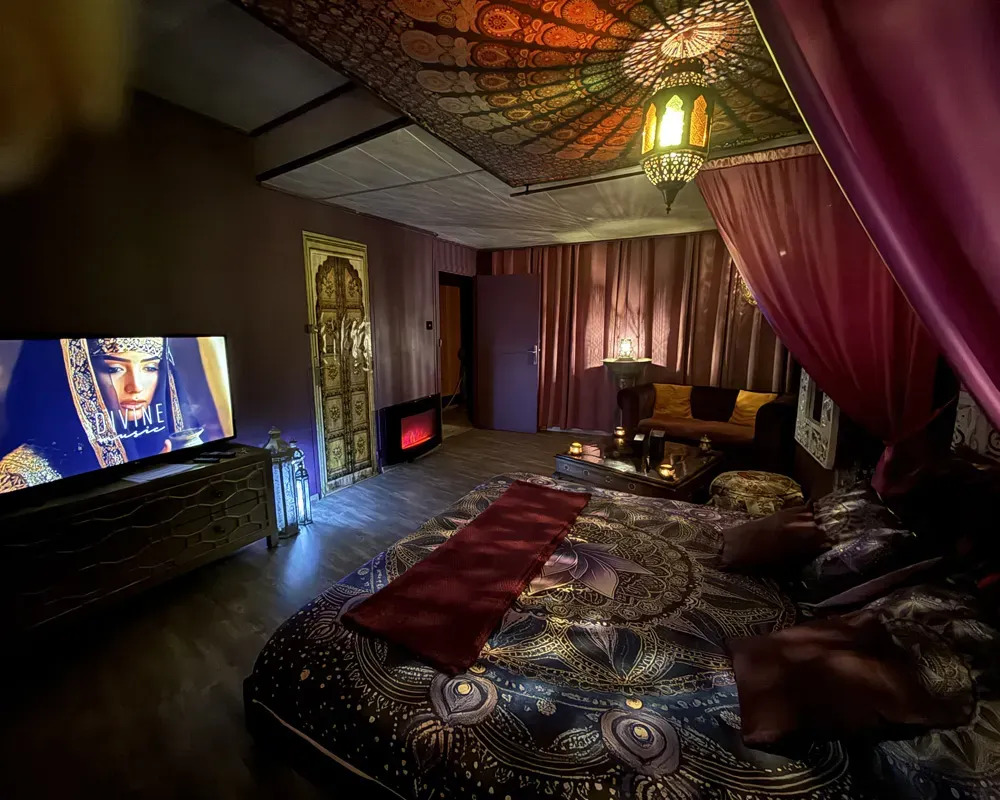 Plongez dans une atmosphère envoûtante grâce à des touches décoratives inspirées de l’Orient, avec des couleurs chaudes, des lumières tamisées et des détails artisanaux soigneusement sélectionnés.